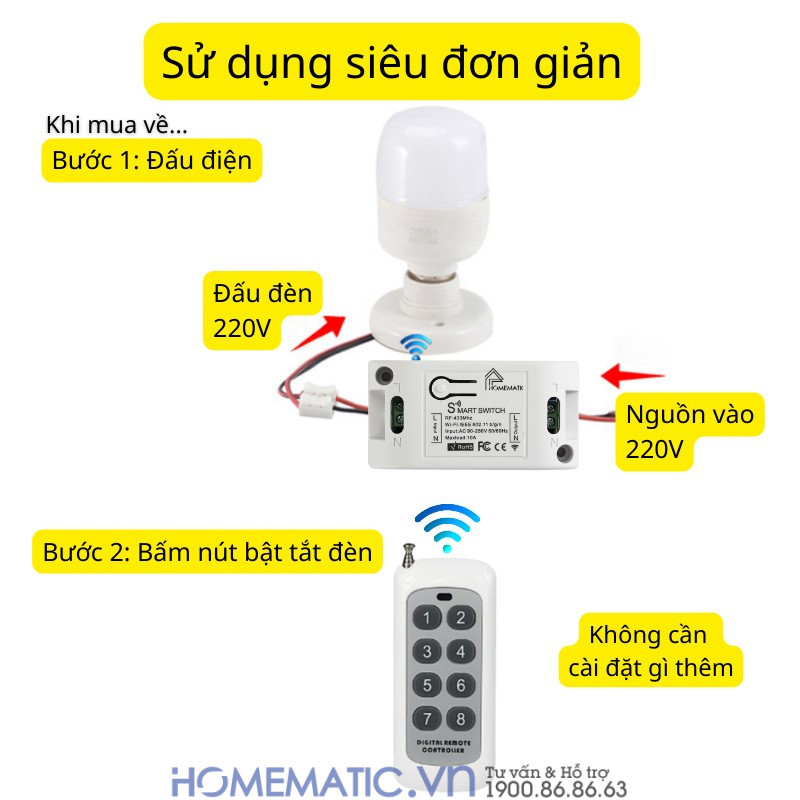 - Lắp đặt đơn giản, không cần thợ: Chỉ cần đấu 2 dây nguồn vào và 2 dây ra nối với đèn; cài đặt ứng dụng tiếng Việt dễ dàng là có thể sử dụng ngay.