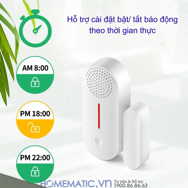Tùy chỉnh chế độ bảo vệ: Hỗ trợ các chế độ báo động linh hoạt như: báo khi mở cửa, báo khi đóng cửa, hẹn giờ và đặc biệt là chế độ chống quên đóng cửa (báo động khi cửa mở quá thời gian quy định). Bạn cũng có thể thiết lập độ trễ báo động và thời lượng còi hú.