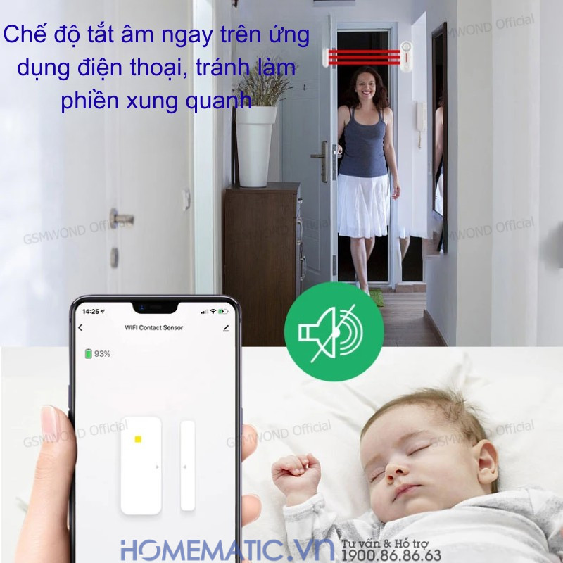 Cảm biến mở cửa S1C bản wifi có còi hú chống trộm báo qua điện thoại Smartlife HM-DS05