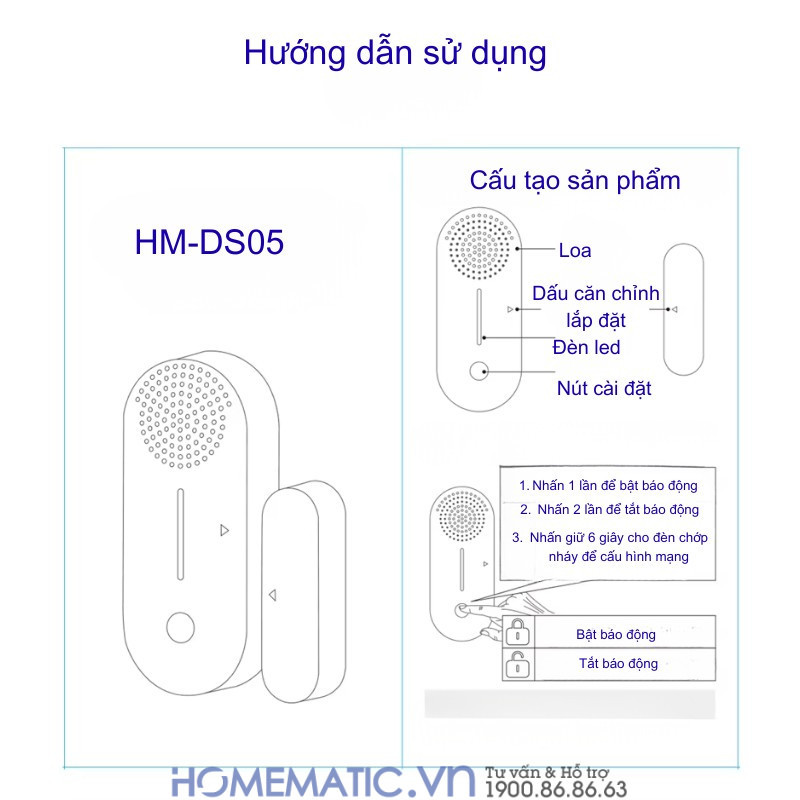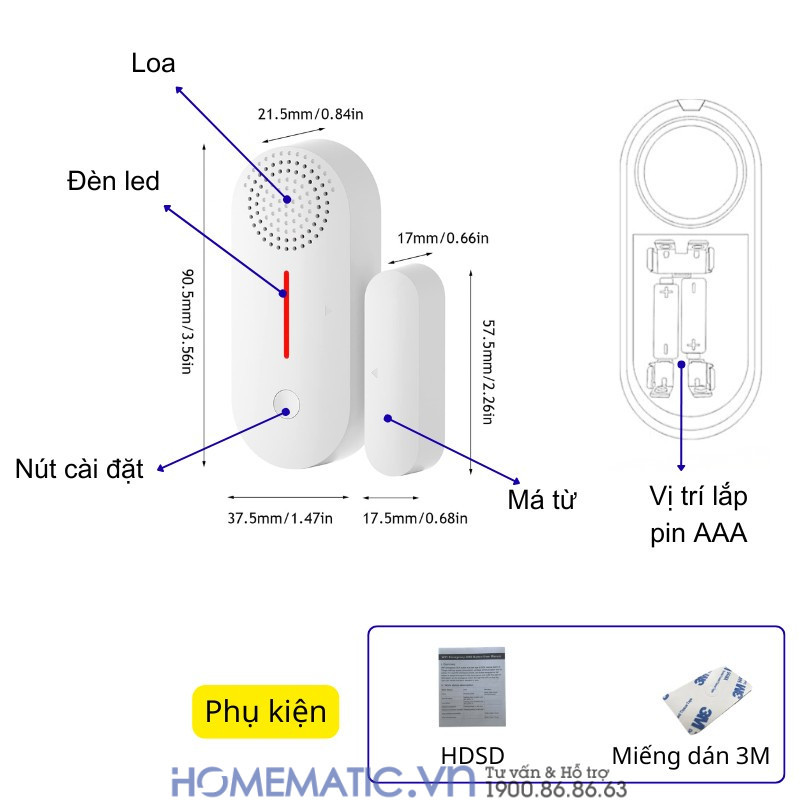 Thông số kỹ thuật Cảm biến mở cửa S1C bản wifi có còi hú chống trộm báo qua điện thoại Smartlife HM-DS05