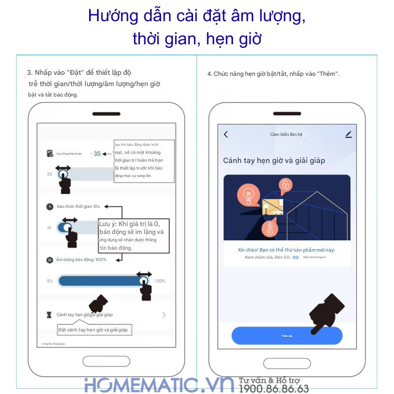 - Thiết lập độ trễ khi báo động và thời lượng báo động. Hỗ trợ nhiều chế độ báo động như đóng cửa, mở cửa, chống quên đóng cửa.