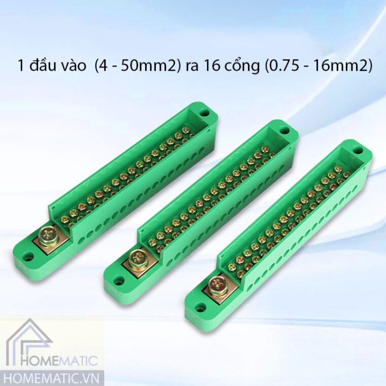 Cầu đấu chia dây điện 1 ra 16 100A FJ116 dùng để chia nhỏ từ 1 dây to ra 16 dây nhỏ, tiện lợi cho việc đấu nối, mối nối gọn gàng, an toàn, chắc chắn, cách điện tuyệt đối, có 1 đầu vào (4 – 50mm2) ra 16 cổng (0.75 – 16mm2)