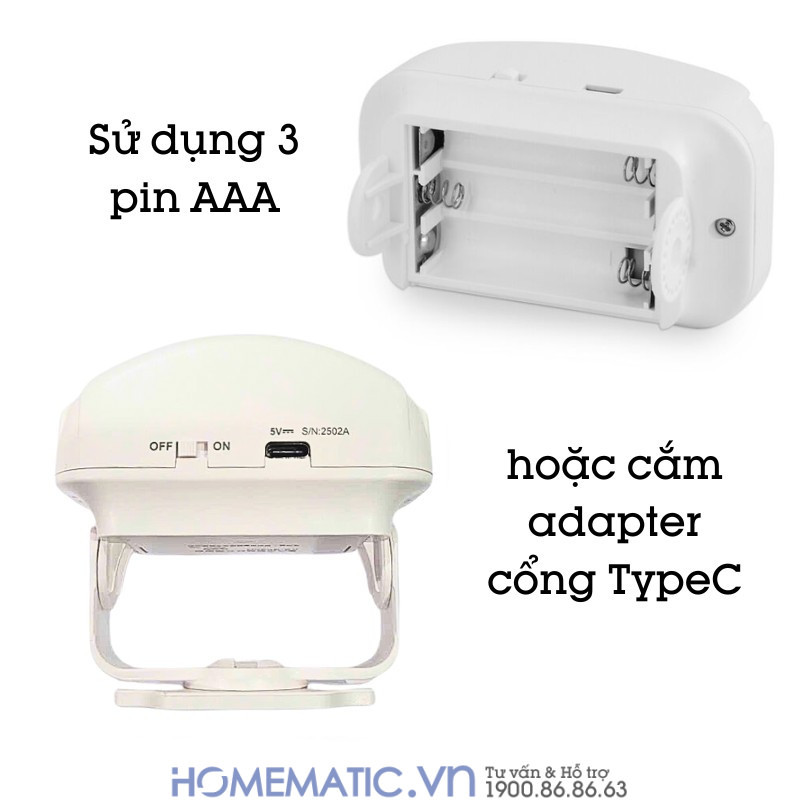 – Ngoài việc dùng pin AA và AAA tiện dụng, cả mắt cảm biến và loa chuông có thể dùng adapter cổng Micro USB tiện dụng (adapter không bao gồm sẵn trong bộ SP). Lưu ý: Quý khách có thể chọn mua thêm adapter với giá 50.000đ/chiếc