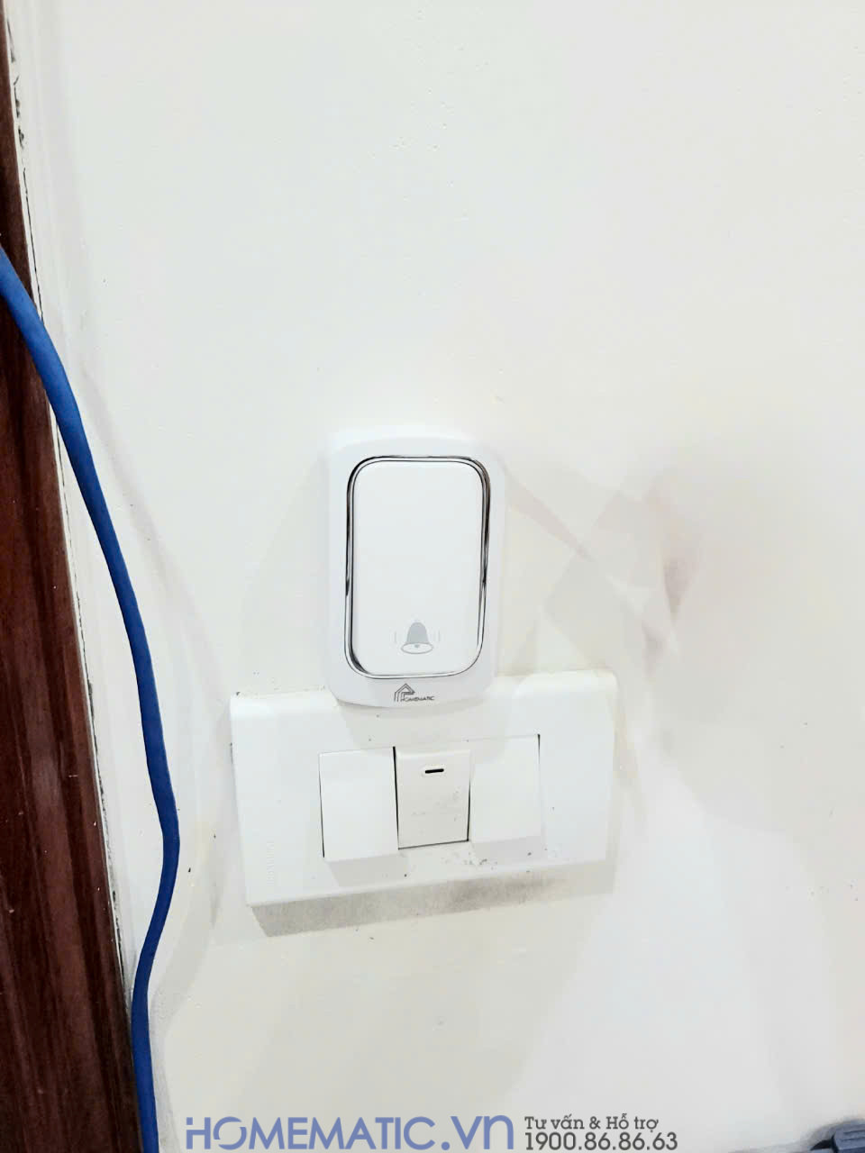 Hoặc có thể bắn vít vào lỗ bắt vít trên nút bấm chuông vào vị trí cần lắp