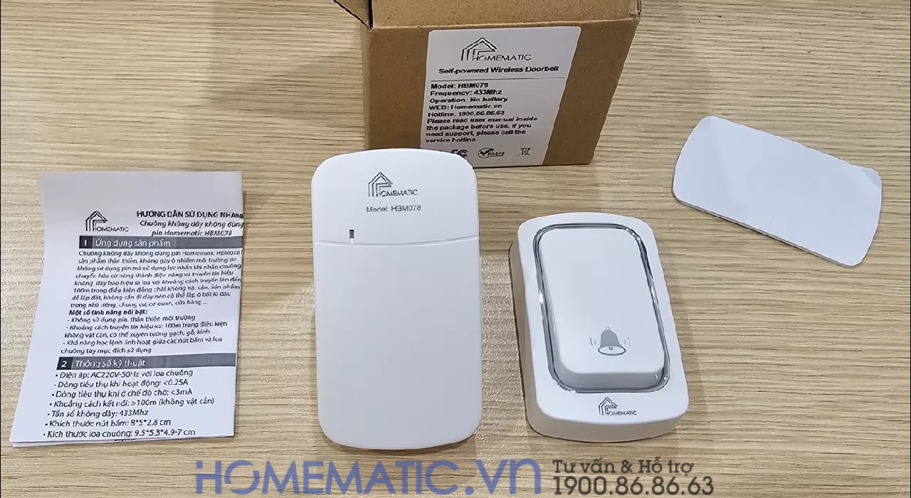 Hiện nay, các dòng chuông cửa không dây không pin đang dần thay thế các dòng chuông cửa không dây truyền thống. Chúng có các ưu điểm như: không phải lo lắng về vấn đề hết pin trong quá trình sử dụng. Trường hợp nếu pin hết mà quên không thay, thông thường sẽ dẫn đến tình trạng pin chảy nước làm hỏng toàn bộ thiết bị. Do không sử dụng pin nên sản phẩm này rất thân thiện với môi trường. HBM078 là dòng chuông cửa không dây không dùng pin đang làm mưa làm gió trên thị trường hiện nay bởi giá thành không quá cao mà chất lượng lại không thua kém gì các dòng chuông không dây cao cấp. Ngoài ra, chuông lại cực kì dễ lắp đặt, bạn có thể mua về và tự mình lắp ở nhà mà không cần thuê thợ.