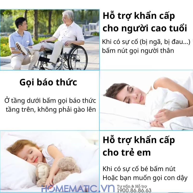 - Người bệnh, phục hồi sau phẫu thuật hoặc hạn chế vận động giúp gọi người chăm sóc nhanh mà không cần la lớn.