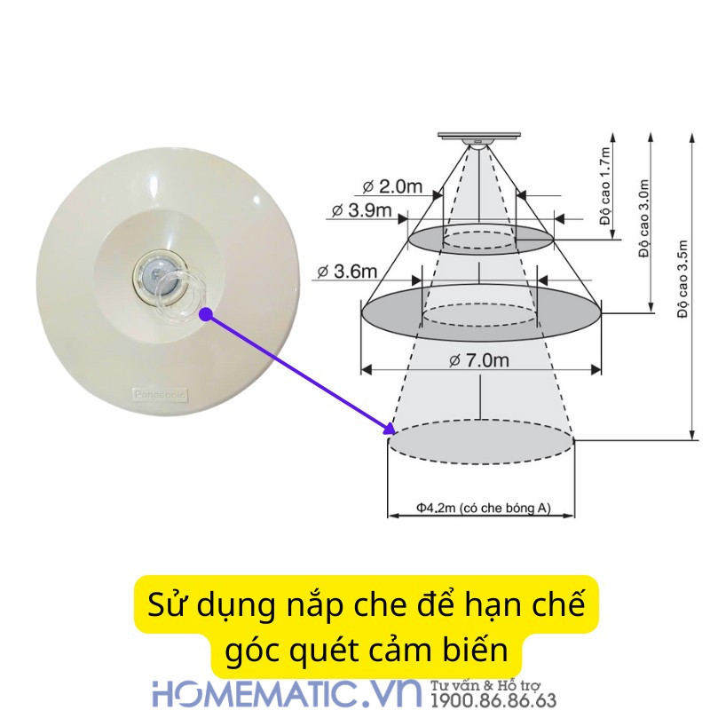 Độ cao cảm ứng | 1.7-4.2m, đường kính cảm biến chiếu xuống 2-7m |