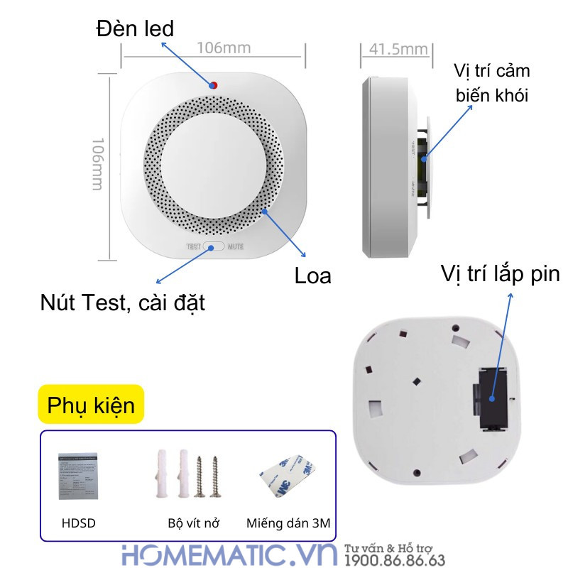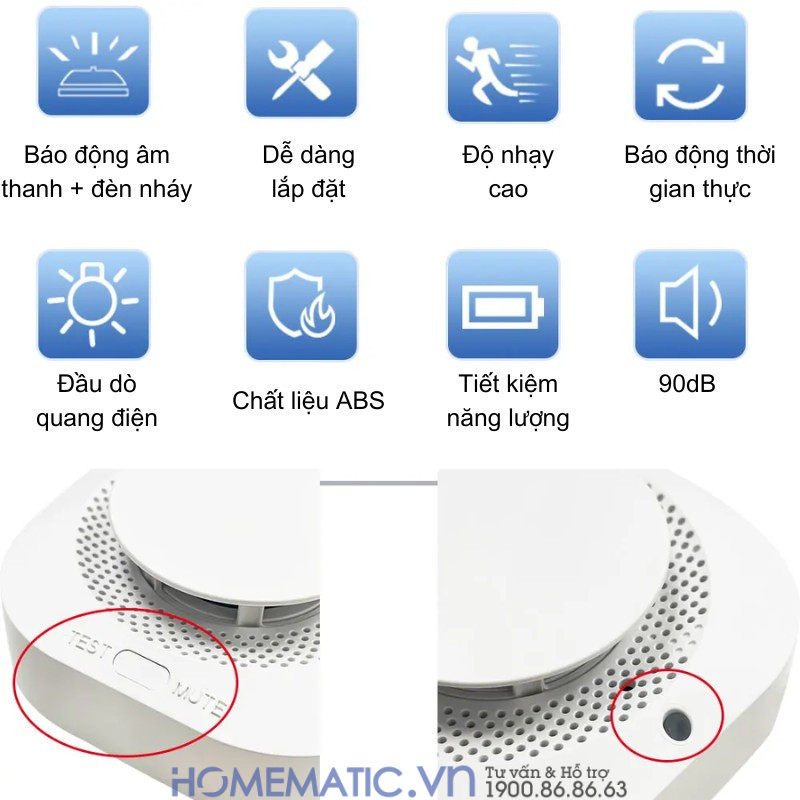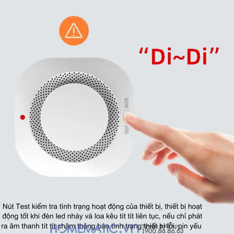 - Có nút test để kiểm tra hoạt động của thiết bị và phục vụ bảo trì (bấm vào xem có hoạt động hay hết pin). Pin thay thế dễ dàng