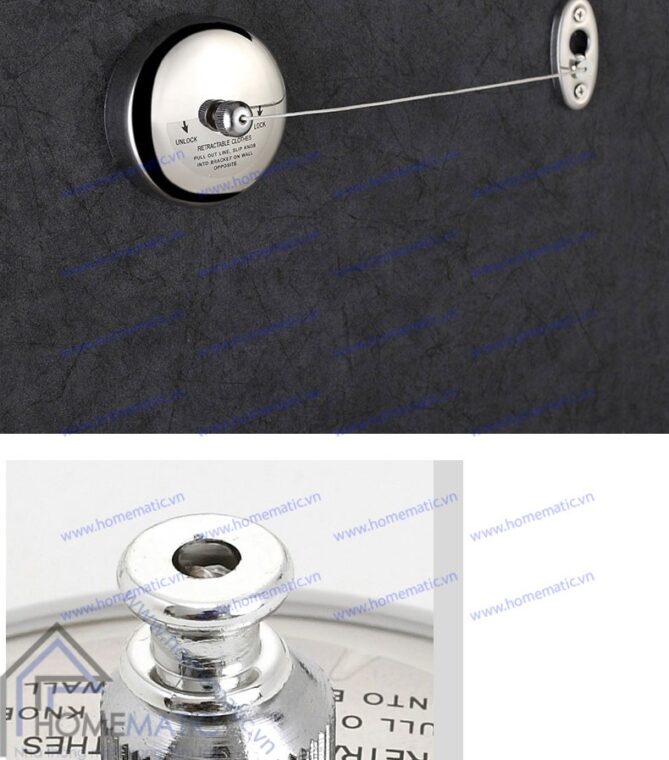 Dây phơi nhà tắm thông minh lắp đặt dễ dàng, bền chắc chắn, độ dài dây phơi tới 2,5m có thể điều chỉnh ngắn dài thoải mái, hình thức thiết kế đẹp, sang trọng do làm bằng vật liệu thép không gỉ sáng bóng, có thể lắp đặt cho gia đình, văn phòng, khách sạn…