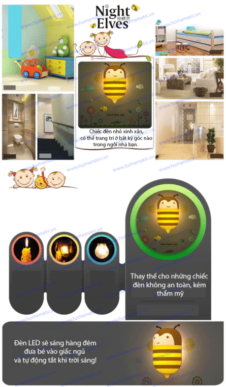 Các bậc cha mẹ thường quan tâm lo lắng từng miếng ăn giấc ngủ của con mình. Với chiếc đèn ngủ cảm biến ánh sáng này, cha mẹ sẽ không cần phải để ý đến việc tắt bật đèn trong phòng bé, bởi đèn sẽ tự động tắt khi trời sáng. Chiếc đèn còn có hình dáng đáng yêu thu hút bé, mỗi bộ đèn còn kèm theo bộ decal trang trí đi kèm khiến bé sẽ thích thú với việc trang trí và có lẽ sẽ còn lên giường đi ngủ đúng giờ mỗi ngày. Công suất đèn thấp, không tốn điện, vật liệu an toàn, không độc hại.