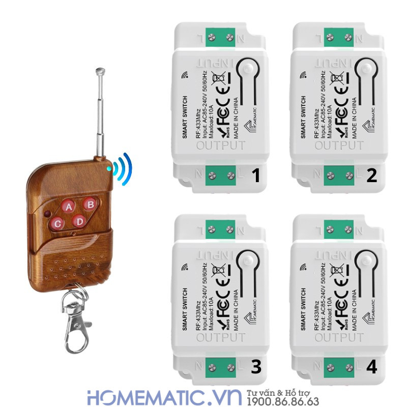 - Có thể kết nối với các loại remote RF433Mhz thông dụng, dễ dàng tìm kiếm và thay thế trên thị trường