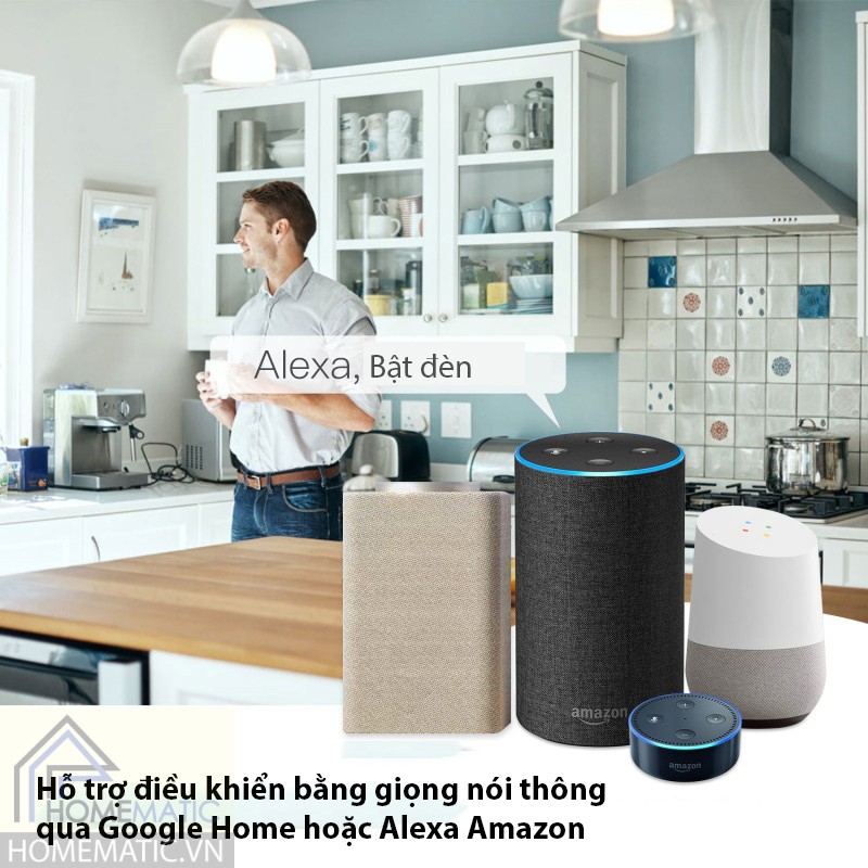 – Hỗ trợ hệ sinh thái app Smartlife/Tuya, bạn có thể thiết lập điều khiển bằng giọng nói qua trợ lý ảo Alexa, Google Assistant, thiết lập hẹn giờ, đếm ngược bật/tắt đèn, share quyền sử dụng với các thành viên trong gia đình.