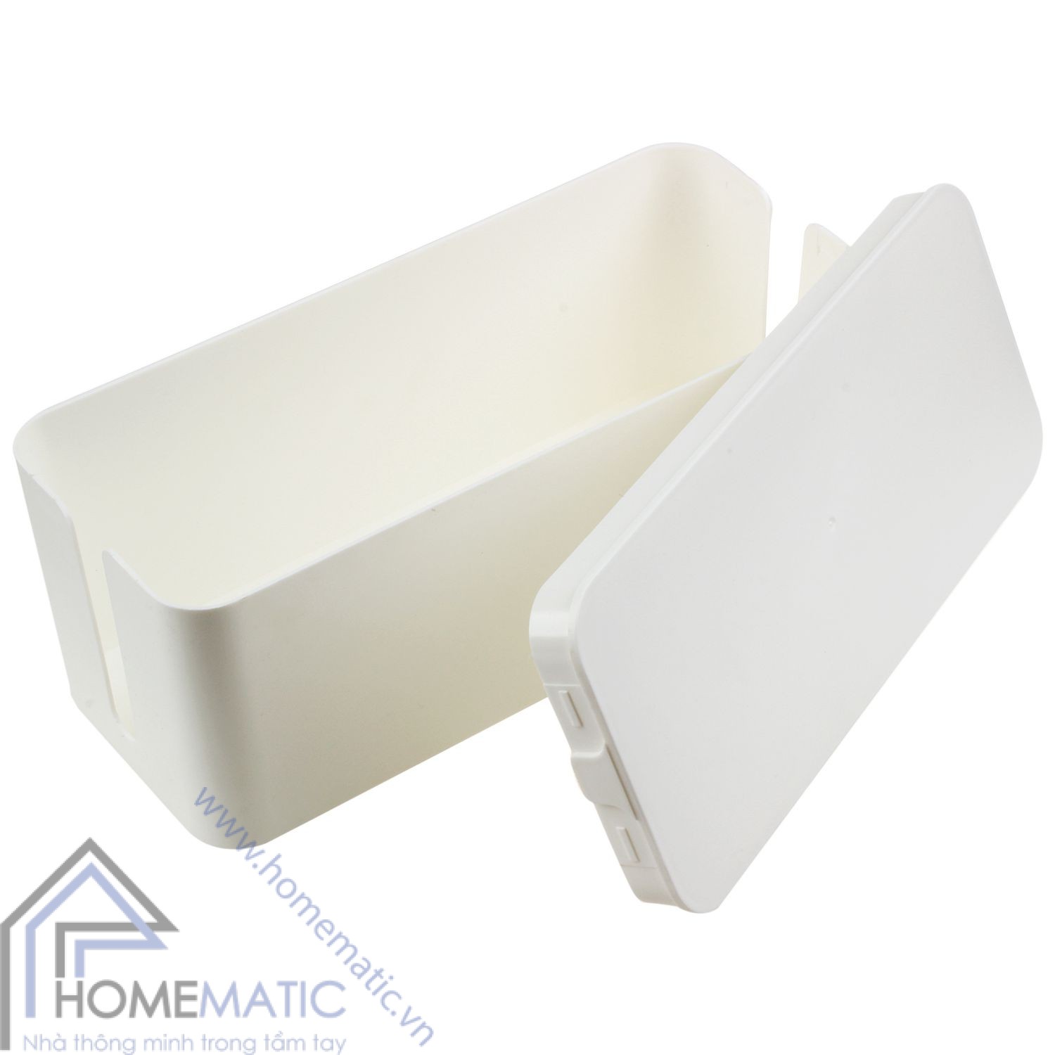 – Hộp đựng dây và ổ điện trắng cỡ nhỏ, bạn có thể để bàn để đựng những ổ cắm nhỏ trên bàn làm việc. Kích thước: 23 x 10 x 12 (cm)