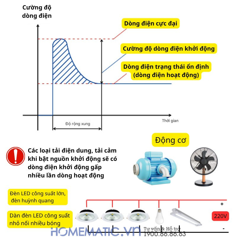 Dùng cho tải cảm ứng, như: motor nhỏ, máy bơm, quạt, máy nén….