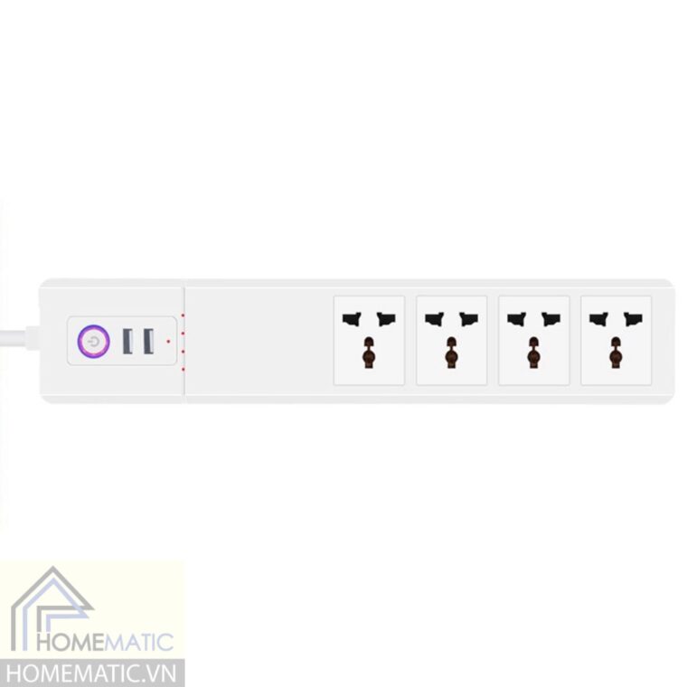 Ổ cắm wifi tuya hỗ trợ 4 cổng cắm thiết bị universale và 2 cổng usb để cắm sạc điện thoại. Có thể bật/tắt/hẹn giờ từng ổ cắm điện và ổ usb, tính năng an toán: chống quá tải, nắp che an toàn, vật liệu nhựa PC chống cháy